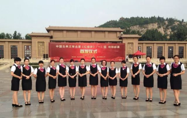 马天娇(左七)为《红楼梦(一)》特种邮票首发式提供礼仪服务