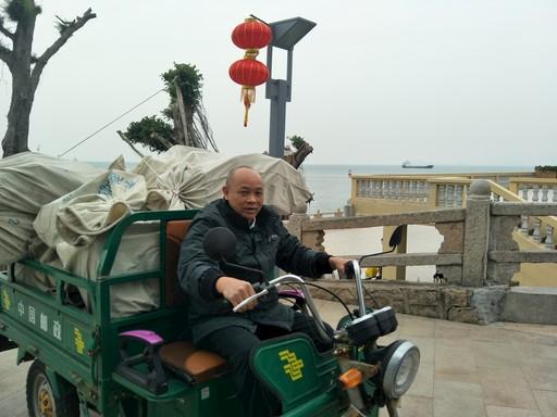 两年前的“五一”前夕,谢坚被评为“中国梦·劳动美”十大最美职工、“全国劳动模范”,各大媒体争先报道这位获得中国工人最高荣誉的投递员,一夜间,这位来自袓国南海小岛上的投递员成了名人。虽然成名了,但谢坚依旧每天登渔船、爬渔排,向渔民了解停留船信息,为准确投递做好准备。近几年,电商之风也刮到了小岛,包裹量越来越多,邮件每天都会随客船送往岛上,每天几十袋邮袋,谢坚要来回运载好几趟,就这样周而复始、日复一日。