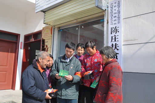 11月9日,江苏省徐州市丰县邮政分公司启动了党建扶贫项目,并组织了以赵本增为“领头雁”的党员志愿者队伍深入到与丰县分公司签订扶贫合作协议的陈庄村进行走访调研,了解贫困人口比重、农作物品种、贫困户致贫原因等,并将赵本增“劳模工作室”作为党建扶贫工作室与该村党支部紧密联系,确保“党建扶智、精准扶贫”政策落地。图为党员志愿者在调研的同时向贫困户介绍“扶贫会员证”的用法。 □陈海彬 摄影报道