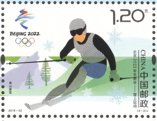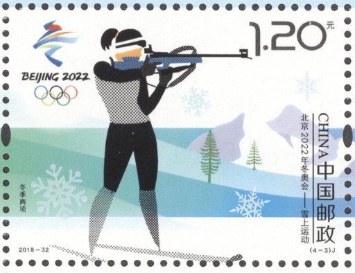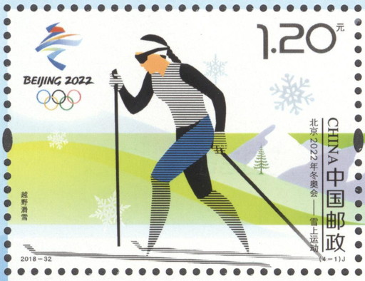 此次发行的《北京2022年冬奥会——雪上运动》纪念邮票一套4枚,为我国首套雪上运动邮票,分别表现了越野滑雪、高山滑雪、冬季两项和自由式滑雪4个雪上运动项目。画面中,滑雪运动员分别以水平线、同心圆、网点和放射线来表现,体现出雪上运动项目的速度感、力量感和造型美感,富有透视感和精致简练的几何形结构,描绘出雪上运动的特征与张力。邮票背景用流线型的波浪线和渐变的色带把雪山、雪松和雪花等冬奥会的环境元素串联起来,在动态变化中体现出秩序美。在印制工艺上,特殊材料印制的雪花晶莹剔透,邮票版张边饰上的“BEIJING2022”字样则采用镂空工艺制作而成,集艺术和防伪功能于一体。邮票发行的同时,中国邮政还推出首日封、纪念封、邮折、邮册等系列邮品在各邮政网点销售,部分商品还可在北京冬奥会特许商品官方网店(//beijing2022.tmall.com)上订购。