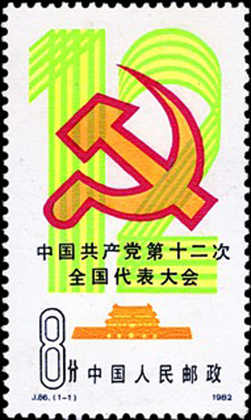 中国共产党第十二次全国代表大会于1982年9月1日至11日在北京召开。参加这次大会的正式代表1600人(出席开幕式1545人),候补代表160人(出席开幕式145人),代表着全国3965万党员。该套邮票由卢天骄设计,于1982年9月1日发行。