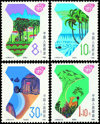1988年4月13日,海南行政区从广东省划出,独立建省,海南省和海南经济特区正式成立。海南经济特区是中国最大的,也是唯一的省级经济特区。海南建省,是海南发展史上的一件大事,也是中国实行改革开放伟大事业中的一件大事。该套邮票由吴建坤设计,于1988年4月20日发行。