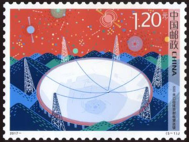 科技兴则民族兴,科技强则国家强。党的十八大作出了实施创新驱动发展战略的重要部署,科技发展进入了快车道。中国邮政于2017年9月17日发行《科技创新》纪念邮票1套5枚,图案内容分别为:500米口径球面射电望远镜、“墨子号”量子科学实验卫星、“探索一号”科考船、渤海粮仓科技示范工程、“神威·太湖之光”超级计算机。该套邮票由杜钰凯设计。