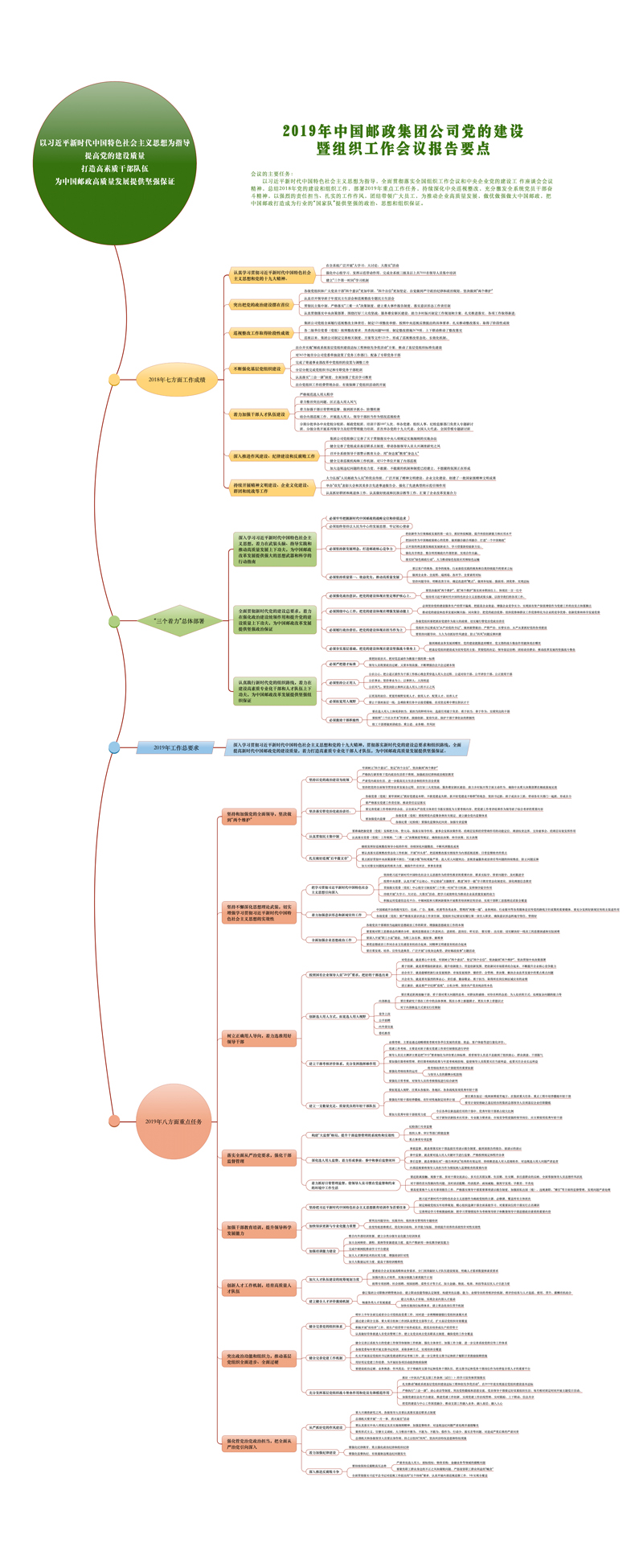 12月24~25日,2019年中国邮政集团公司党的建设暨组织工作会议在京召开。会议的主要任务是,以习近平新时代中国特色社会主义思想为指导,全面贯彻落实全国组织工作会议和中央企业党的建设工作座谈会会议精神,总结2018年党的建设和组织工作,部署2019年重点工作任务,持续深化巡视整改工作,充分激发全系统党员干部奋斗精神,以强烈的责任担当、扎实的工作作风,团结带领广大职工,为推动企业高质量发展,做优做强做大中国邮政,把中国邮政打造成为行业的“国家队”提供坚强的政治、思想和组织保证。集团公司党组书记、董事长刘爱力代表集团公司党组作题为《以习近平新时代中国特色社会主义思想为指导 提高党的建设质量 打造高素质干部队伍 为中国邮政高质量发展提供坚强保证》的工作报告。会议由集团公司党组副书记、总经理张金良主持,副书记李丕征作会议总结,集团公司党组成员出席了会议。中央和国家机关工委、交通运输部、国家邮政局有关领导同志出席会议。