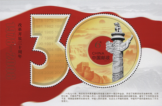 改革开放进入新世纪以后,随着我国由富起来到强起来,一些振奋人心的大事件接踵而来,中国加入WTO、北京成功申办2008年奥运会、中国首次载人航天飞行成功、全面取消农业税、中国探月首飞成功、中国首次落月成功、城乡居民社会养老保险制度全覆盖、北京成功申办2022年冬奥会、共筑中国梦等,这些国家重大事件都成为中国邮票的选题。邮票记录国家的历史,这句话十分恰当。“共筑中国梦”这一主题包含了丰富的内容,2013年发行《中国梦——国家富强》特种邮票,2014年发行《中国梦——民族振兴》特种邮票,2015年发行《中国梦——人民幸福》特种邮票。