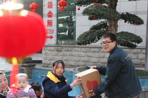 1月23日不到7点,湖北省黄石市邮政速递物流分公司团城山揽投部的揽投员李敏就已经出班投递前一日因客户原因未妥投的邮件。据了解,团城山揽投部一共有6名揽投员,春节旺季人均日投递量近300件,已经赶上去年“双11”的峰值。为了让客户及时收到邮件,揽投员们提前出班,晚上还要进行小夜班投递,在繁忙的邮路上迎接春节的到来。图为李敏在张灯结彩的小区里投递邮件。 □汪林莉 摄影报道