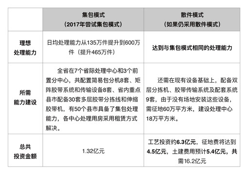 湖州申通常务副总经理汪大海对记者说:“集包模式更适合轻小件的处理和转运。如果要改用散件外送的模式,我们的处理能力至少要降低三分之一。”根据浙江邮政提供的一组数据(见图2),如果邮政全面采用集包模式,不仅能缩短邮件处理时限,还能大幅降低企业成本。