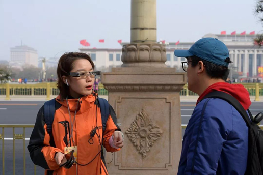 戴上直播眼镜的长城新媒体耿佳成为“网红”记者