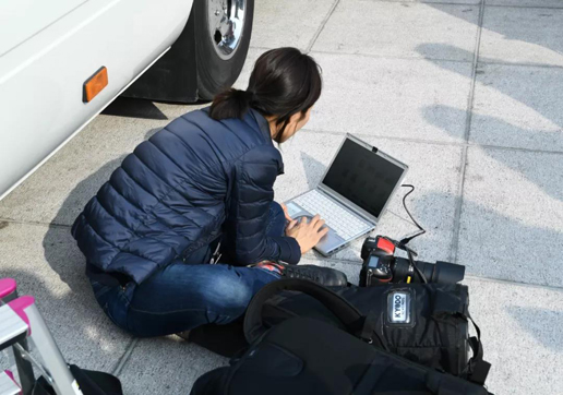 一女记者在会场外,不停地敲字,估计到了交稿时限了,只能寻找空闲时间写稿子。(领导,再等等,我也有一、二、三、四、五、六、七篇稿子还没写完)
