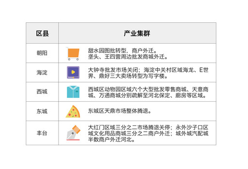 图表1 北京地区产业集群疏解情况
