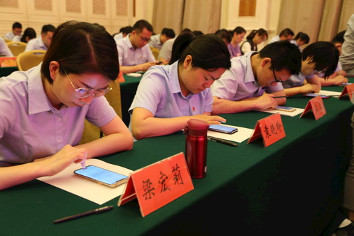 近日,邮储银行安徽省分行党委举办了党务干部培训班。在培训现场,100余名学员都在格外认真地低头摆弄手机。凑近一看,原来是学员们正通过“中邮先锋”APP进行党建应知应会知识线上考试。