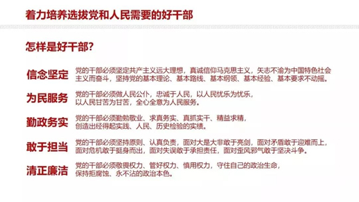 习近平总书记强调,好干部的标准,大的方面说,就是德才兼备。同时,好干部的标准又是具体的、历史的。不同历史时期,对干部德才的具体要求有所不同。
