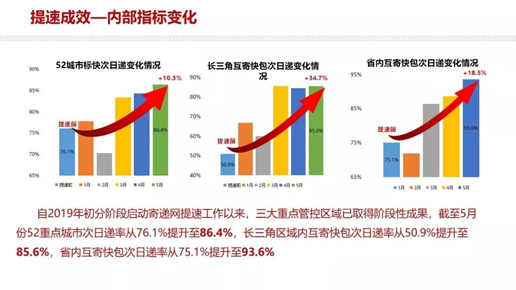 刘爱力还介绍了集团公司自2019年初分阶段启动寄递网提速工作以来,三大重点管控区域取得的阶段性成果,寄递业务时限质量有了大幅提升。