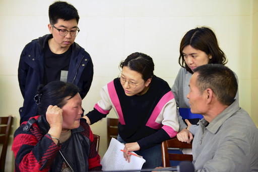 采访团一行先后来到商洛市洛南县和商州区,深入中国邮政定点扶贫区域的政府机关、社区农户、企业工厂、田间地头,参观了洛南县周岭村辣椒种植基地、辣上天专业合作社、商州区韩子坪村香菇酱厂等中国邮政定点扶贫项目,对中国邮政在商洛地区的党建、教育、产业、电商、金融、保险、科技、基础设施等8个方面的扶贫工作进行了认真了解,感受到了中国邮政定点扶贫给地方经济和百姓生活带来的实实在在的改变。图为采访团采访当地贫困生家长。