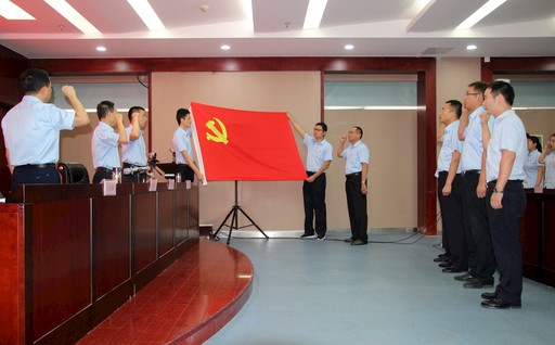 近日,邮储银行安徽省阜阳市分行党委召开庆祝建党98周年会议。该分行党委委员带领全体党员面向党旗,重温入党誓词,牢记入党初心,坚定理想信念。□任洁 摄影报道