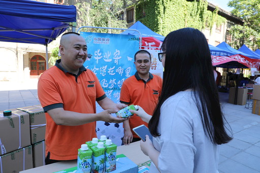 针对一年一度的毕业季,北京市邮政寄递事业部在各大高校陆续开展包裹收寄服务。海淀区寄递事业部采取摆放易拉宝、在流动电动车上张贴宣传广告及建立微信群等诸多方式在校园内进行广泛宣传,并在收寄点为前来咨询、办理寄递业务的学生送上清凉饮料。图为在北京大学校园包裹收寄点,EMS工作人员既办业务,也送清凉。