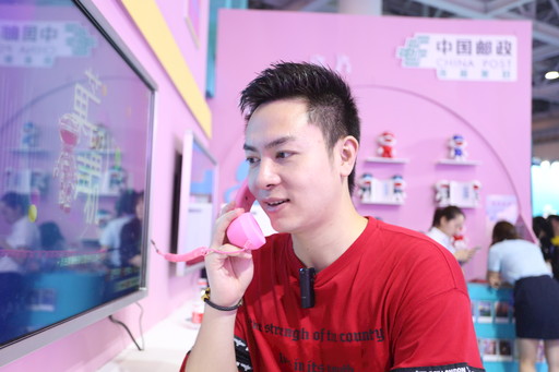 粉蓝相间的主体配色、浪漫的彩色灯饰少女心十足,4台声音明信片录制设备科技感满满......中国邮政的展区就在主舞台的旁边。“00后”女孩沈佳珎刚刚在这里制作完一张声音明信片,便急不可待地向朋友们展示她的“成果”。“没想到明信片也有这么新颖的传递方式。”她扫描明信片上的二维码,尝试着回放自己刚刚录制的声音。声音明信片录制设备,可以将心里话录制下来,生成二维码,即时打印在明信片上。为了体验制作声音明信片,大家排起了长队,成为展场的一道风景线。