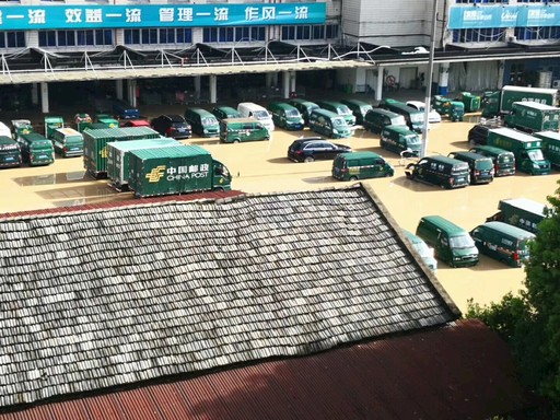 浙江临海:台风过后,临海市邮政分公司生产场地被淹。郭定华 摄