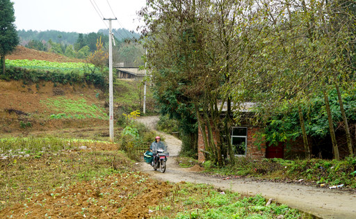 乡邮员行驶在田野乡间。记者 韩静桦 摄