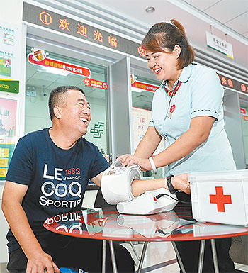 免费测血压等便民服务赢得客户的心。