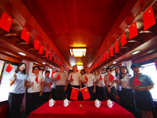 9月21日,邮储银行福建省福州市分行党委举办追寻“红船精神”党日活动。此次活动地点别具匠心地选择在福州西湖画舫的“红船”上进行,会场模拟中共一大的“红船”会议场景,让党员们身临其境地接受一次生动的党性教育和精神洗礼。活动现场,党员们集体观看了《“红船精神”初心和动力》纪录片,合唱歌曲《歌唱祖国》。 □张惠雯 摄影报道