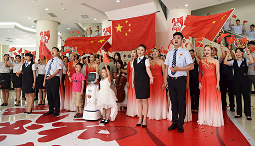 “我和我的祖国,一刻也不能分割,无论我走到哪里,都流出一首赞歌”……在庆祝新中国成立70周年之际,邮储银行海南省分行党委组织全行员工与重点客户以“快闪”形式共同演唱《我和我的祖国》,以此歌唱伟大祖国,鼓舞全行员工在夺取全面建成小康社会新胜利和海南自贸区(港)建设的伟大进程中作出新的贡献。 □海南记者 梁磊 摄影报道