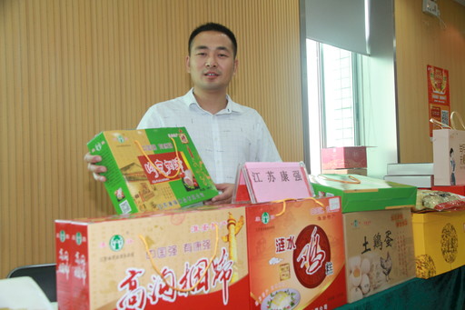 康强公司总经理胡新江在宣传推介产品。