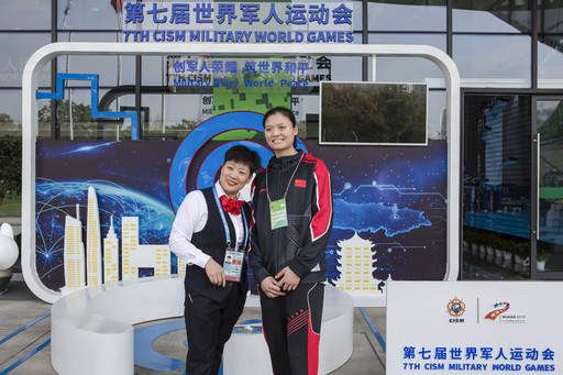 为感谢周到的服务,第七届军运会跆拳道73公斤级冠军李晨邀请邮政工作人员合影留念。