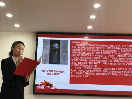 11月11日,江苏省靖江市邮政分公司开展红色家书诵读活动,该分公司党员分别为大家讲述了革命伉俪陈觉、赵云霄,无产阶级革命家夏明翰,无产阶级军事家左权的家书故事。