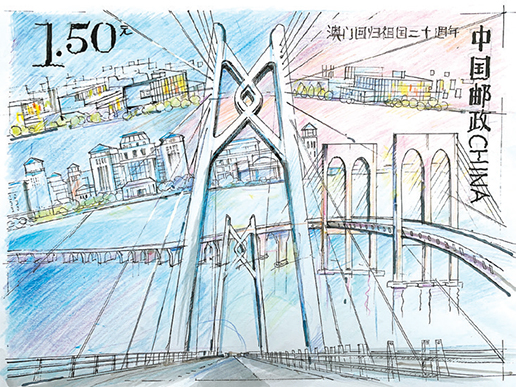 “《澳门回归祖国二十周年》与《粤港澳大湾区》两套邮票是今年5月同时约稿的,设计也是穿插进行,因为我对澳门感受更为深刻,加之这套邮票的内容相对集中,所以设计比较顺利,在《粤港澳大湾区》邮票完成三周后就提交了这套邮票的图稿。”韩秉华饶有兴致地回忆道。
