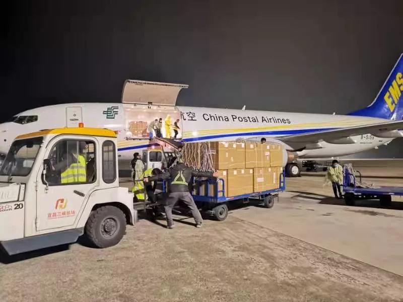 2月12日晚,中国邮政航空公司CF9122广州至宜昌航班装载着广东省赴湖北省医疗队人员行李和防疫医疗物资,于19时30分从广州白云机场起飞,经过1小时20分钟的飞行,于20时51分成功降落湖北宜昌三峡机场。这是中国邮政防疫物资空中运输绿色通道开启以来,邮政航空累计执行的第14班运输专机,宜昌也成为继武汉后邮航第二个防疫物资通航送达地。