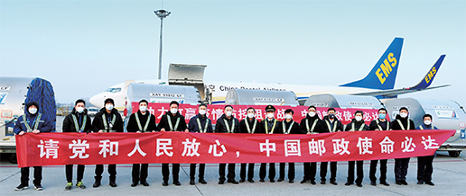 1月31日,邮航专机将药品、医用口罩、防护服、手套等共约26吨防疫物资从北京运往武汉。