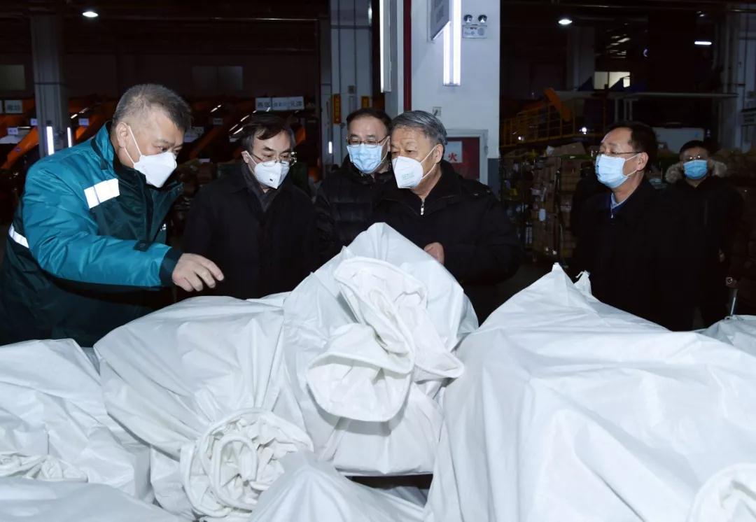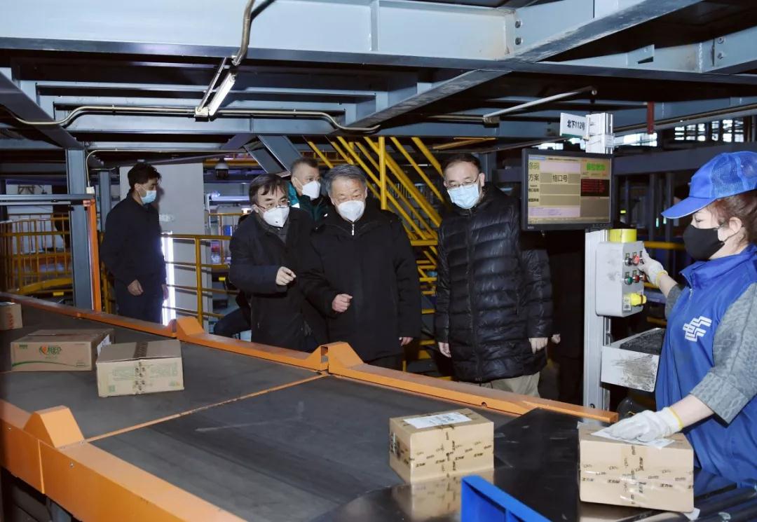 杨传堂在北京邮件综合处理中心了解了当前邮件快递及捐助物资专车发运等工作,详细询问了邮件寄递、员工返岗及防护物资配备等情况。