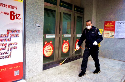 连日以来,湖南省新宁县邮政分公司积极配合政府部门,对新冠肺炎疫情防控工作抓实、抓严,每天对办公场所消毒三次,确保人民生命安全得到保障。图为该分公司保安人员正在对取款机室进行消毒。 石国兴 摄影报道
