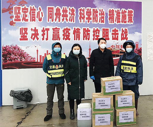 2月17日,麻城市支行党总支书记、行长王继东带队为当地南湖办事处牌楼社区疫情防控工作队送去10袋大米、5壶油和500个口罩等抗疫物资,为挂点扶贫村疫情防控工作送去抗“疫”动力。