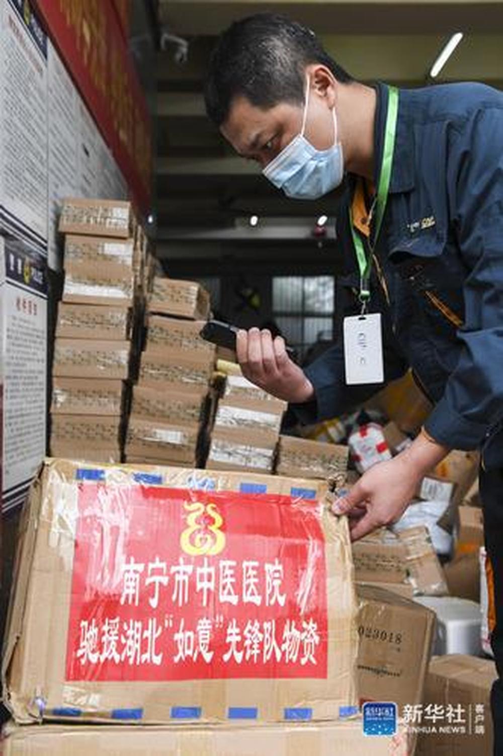 近日,广西邮政部门开通绿色通道,免费为援鄂医护人员提供返程行李寄递服务。工作人员对邮件逐一跟踪、实时监控运输,确保行李邮件第一时间收寄、最快时间运输、优先投递送达。