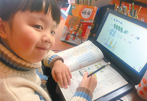 万州区电报路小学的“学霸”杨清如小朋友收到教材后,在电脑的辅助下预习新课,开心极了。李璐君 摄