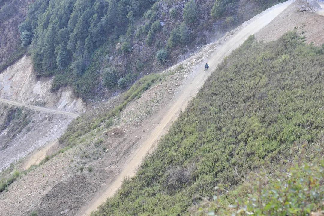 所谓“好走多了”的邮路,一侧是陡峭的石壁,一侧是深深的悬崖。