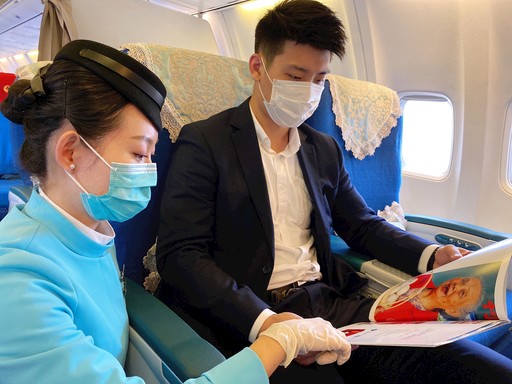 坐在飞机上,只要扫一扫二维码即可将江西优质农副产品直邮到家。日前,由江西省邮政分公司与江西航空有限公司联合打造的线上商城 ——“寻味江西·航邮优选”正式上线。原生态的农家小吃、独具特色的客家风味、原产地直发的新鲜瓜果、精美的景德镇陶瓷等江西优质特色产品可通过这一平台“邮”向全国,同时拓宽扶贫农副产品销售渠道。图为乘务人员在向乘客介绍“寻味江西·航邮优选”的产品。 □龙景君 钟丽园 摄影报道