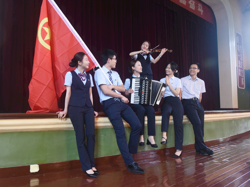 图为4月24日该分行团委在开展金融知识宣讲活动的间隙,组织部分青年团员在电影《芳华》取景地小院演唱共青团团歌,以别开生面的形式庆祝“五四”青年节,激励青年员工不忘初心、不负芳华,为企业发展多作贡献。 □海南记者 梁磊 摄影报道
