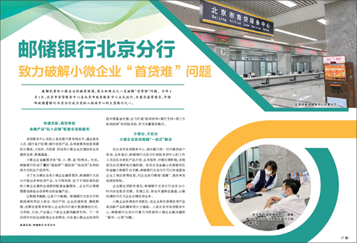 缓解民营和小微企业的融资困境,重点和难点之一是破解“首贷难”问题。今年4月1日,北京市首贷服务中心在北京市政务服务中心正式运行,为落实监管要求,中国邮政储蓄银行北京分行成为首批入驻该中心的大型银行之一。