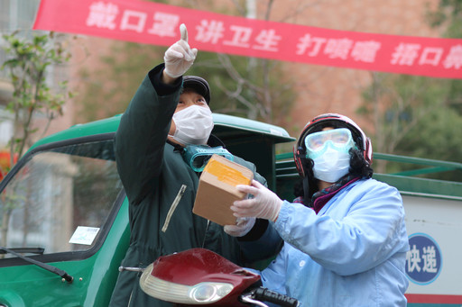 自疫情阻击战打响以来,被江苏省金湖县邮政分公司员工誉为“邮嫂”的王红,退掉本已预订好的车票,留下来与丈夫杨和仁一起投递邮件,夫妻二人并肩战“疫”。□吉尔云 摄