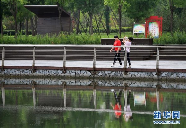 市民在许昌中央公园游玩(6月18日摄)。 新华社记者 李嘉南 摄