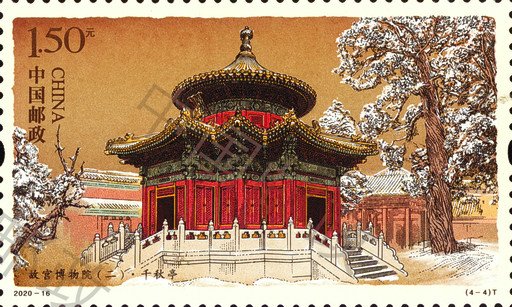紫禁城建造技艺高超,内在考究精妙,外在磅礴大气,代表着当时最高的建造水平。中央轴线上分布着三大殿(太和殿、中和殿以及保和殿)和后三宫(乾清宫、交泰殿以及坤宁宫),左右两条次轴线上分别分布着慈寿宫、宁寿宫等宫殿。出于防御需要,宫殿建筑外围筑有宫墙,四周分布有角楼,外有护城河环绕。故宫平面示意图首次登上邮票,细腻、完整地呈现了故宫恢弘的建筑布局。