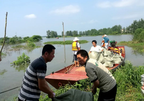 9:00,到达转移安置点,都昌县分公司帮扶人员早早就在那等候。安顿好受灾群众后,我们又一起将周边几个圩堤防汛指挥部和受灾乡镇人员所需的方便面、矿泉水、衣物等必需品和进口邮件一袋袋搬运上船,打包出发。