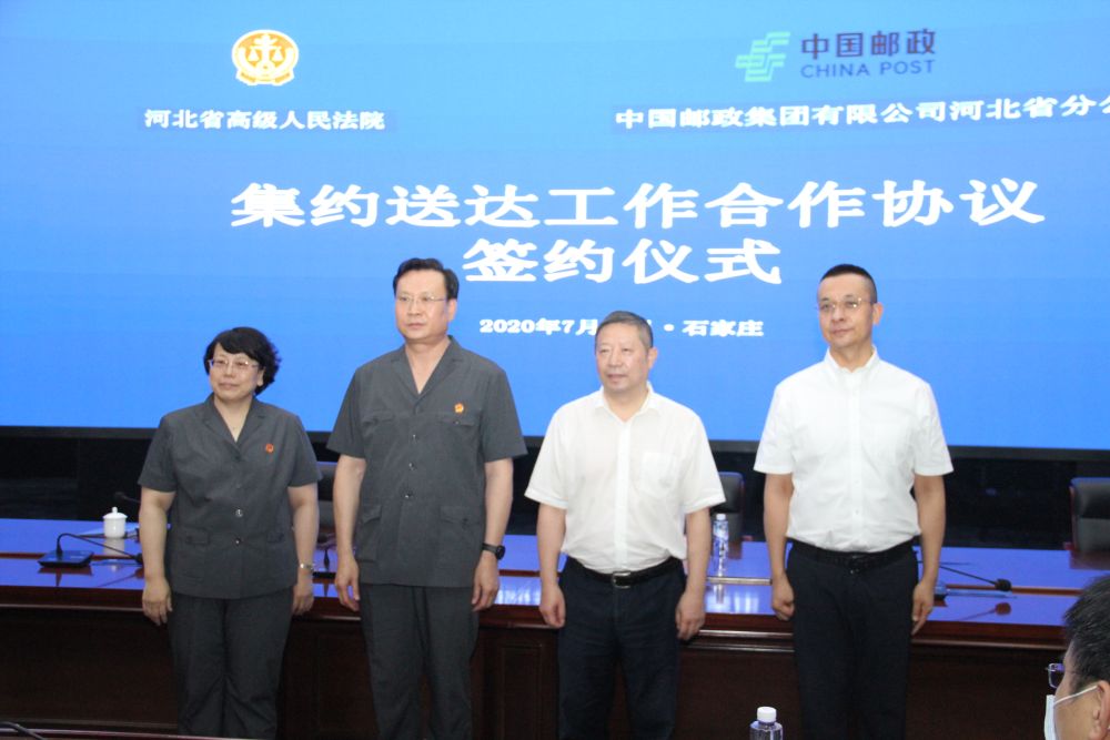 河北邮政将积极依托自身数据服务能力、网络资源、专业队伍等优势,为全省各级人民法院提供邮寄送达、直接送达辅助、公告送达、文书集约送达等服务,持续加强大数据分析及深度应用合作,不断创新诉讼文书集约送达服务模式,共同为人民群众提供更有效率、更高质量的送达服务。