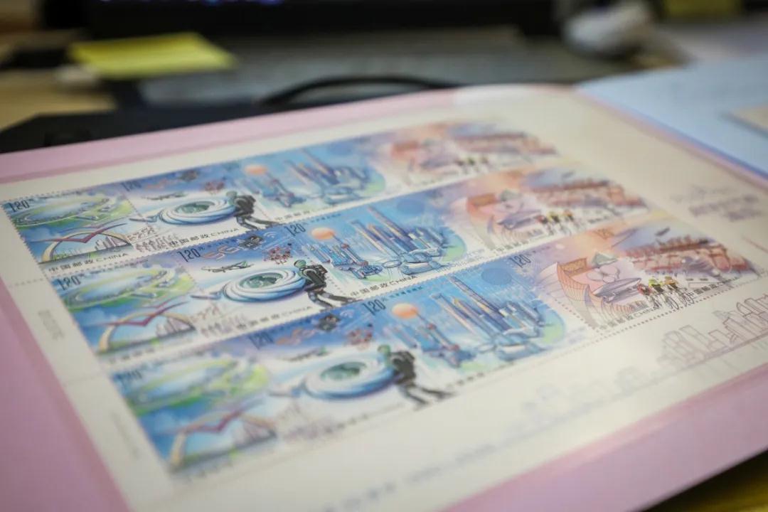 据了解,该套邮票采用高精度调频加网技术印制,运用冷烫、全彩荧光工艺对邮票进行渲染,使邮票图案层次更加分明,在阳光下冷烫图文反射出七彩的光泽感,紫光灯下邮票呈现出绚丽的全彩荧光效果,生动演绎了上海浦东30年来的发展成就。
