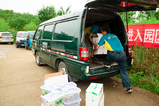 邮车开到田间地头,果子直接上车,快速运往邮件处理中心。