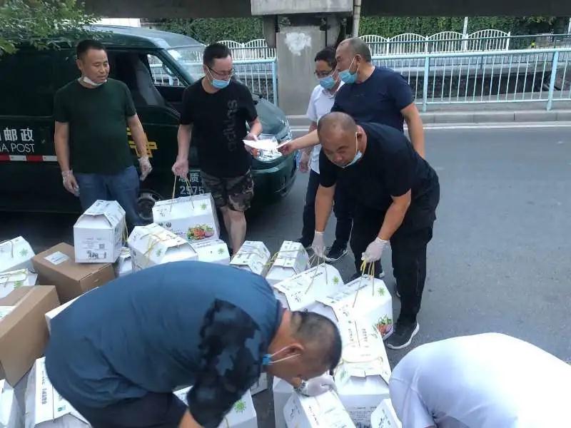 7月18日夜晚,由于同城配送业务量增加,乌鲁木齐市分公司机关工作人员纷纷前往投递点,协助投递员为市民配送果蔬