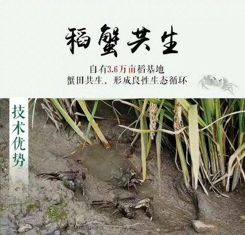 种植水稻的同时,采用生态立体种养技术,在稻田里养蟹,蟹肥稻香,满地金黄,令稻蟹互利共生。稻为蟹庇荫、供养;蟹为稻除草、灭虫、净化水质、提供有机肥滋养,充分发挥“1+1大于2”的效果,实现互利共赢,和谐共生。水稻和河蟹混养的田地不能使用农药和化肥,因而盘锦大米可以说是绿色、生态的代名词!